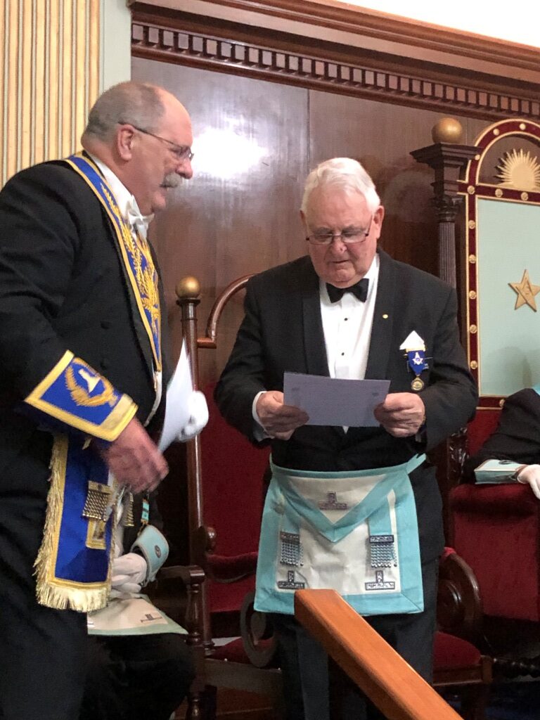 W. Bro Alan Robertson of The Pacific Lodge received his 50th Year Service Jewel and certificate at the lodge’s regular